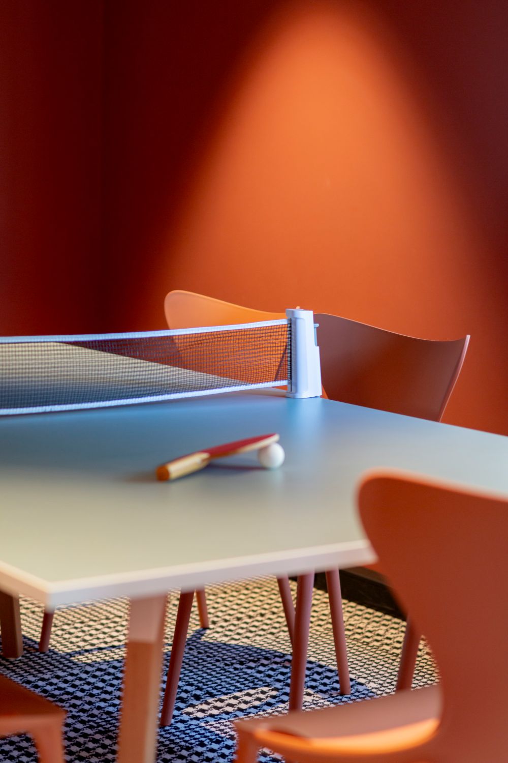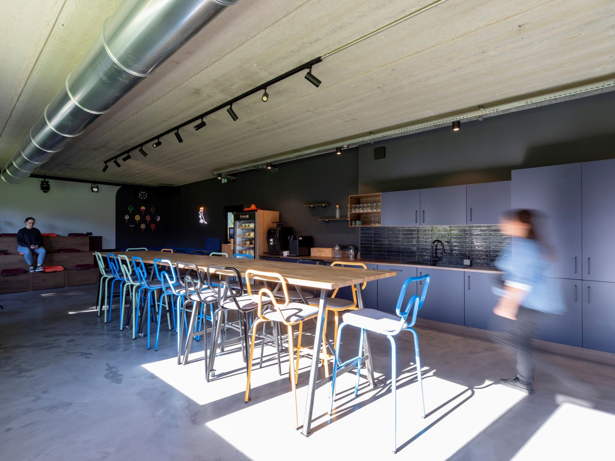 Enfin, la cuisine et l’espace de pause ont été conçus comme des lieux de vie à part entière, permettant aux équipes de se retrouver pour cuisiner, échanger, travailler, se réunir sur l’estrade ou même se lancer dans une karaoké, (oui, ils adorent le karaoké.).