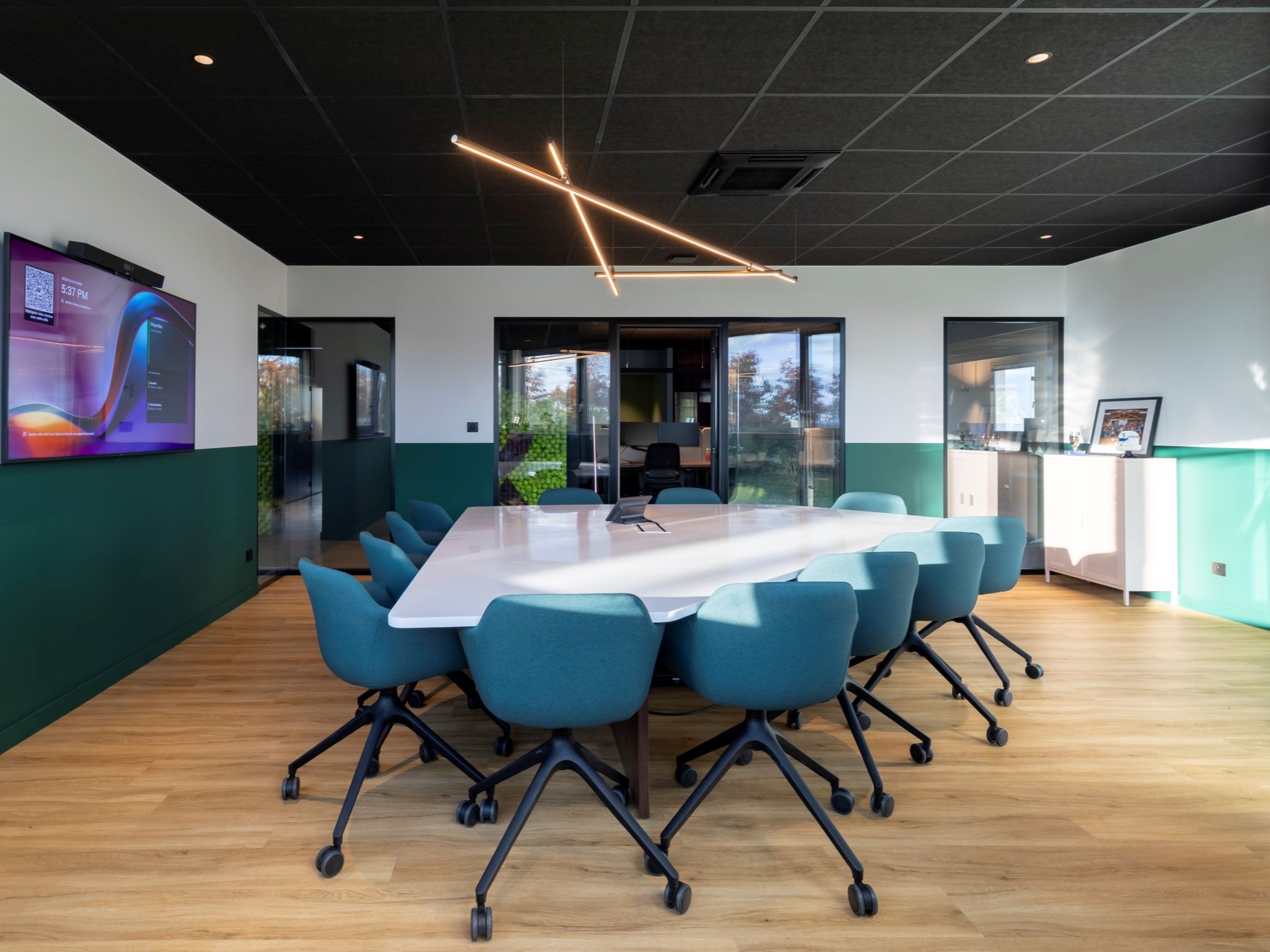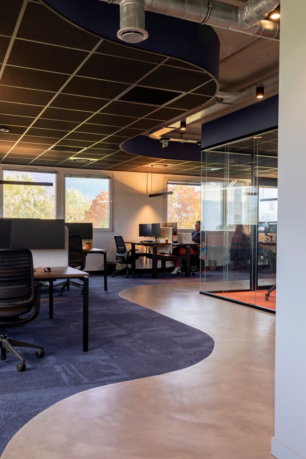 En septembre 2024, c’est le démarrage de travaux réalisés en un temps record pour réhabiliter un plateau de 800 m2 réparti sur deux niveaux. L’ensemble de l’espace a été déconstruit pour définir un nouvel agencement répondant aux besoins des équipes : flex office, boxs, salles de réunion, espace de formation, cuisine entièrement équipée etc. Tout en incluant la future croissance des équipes KAM.