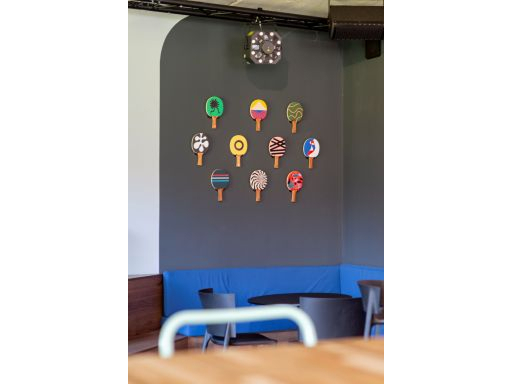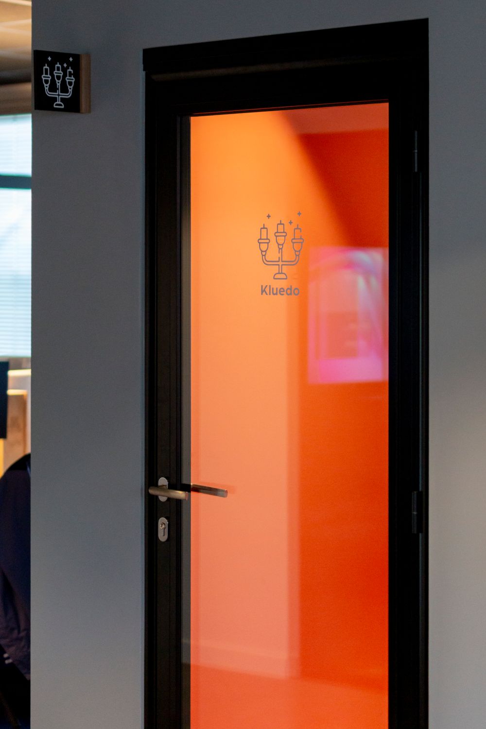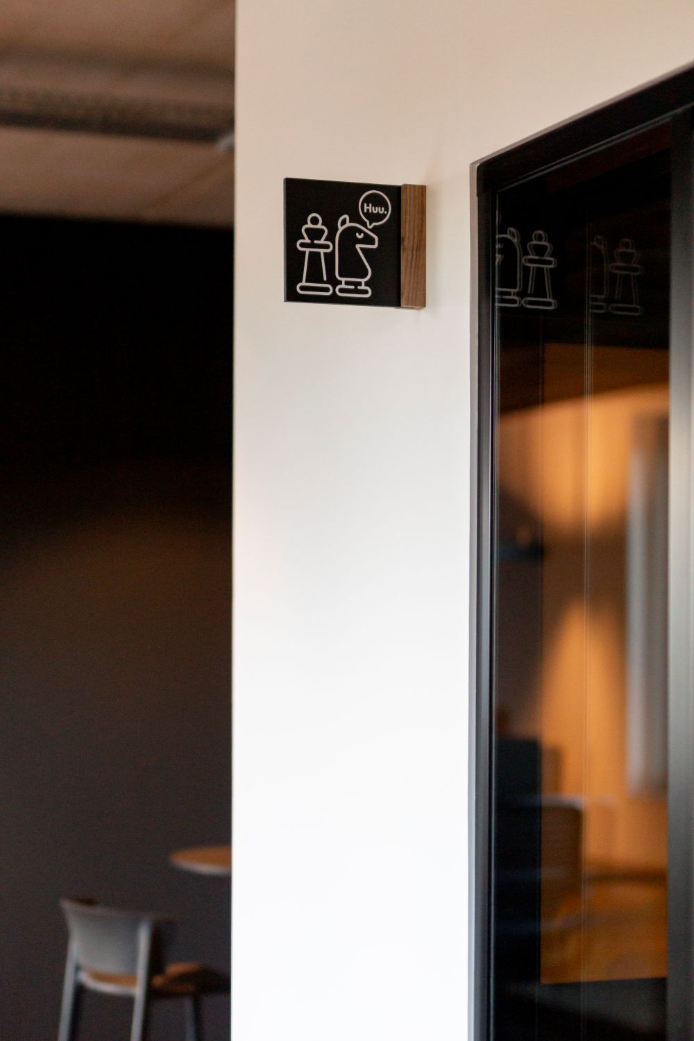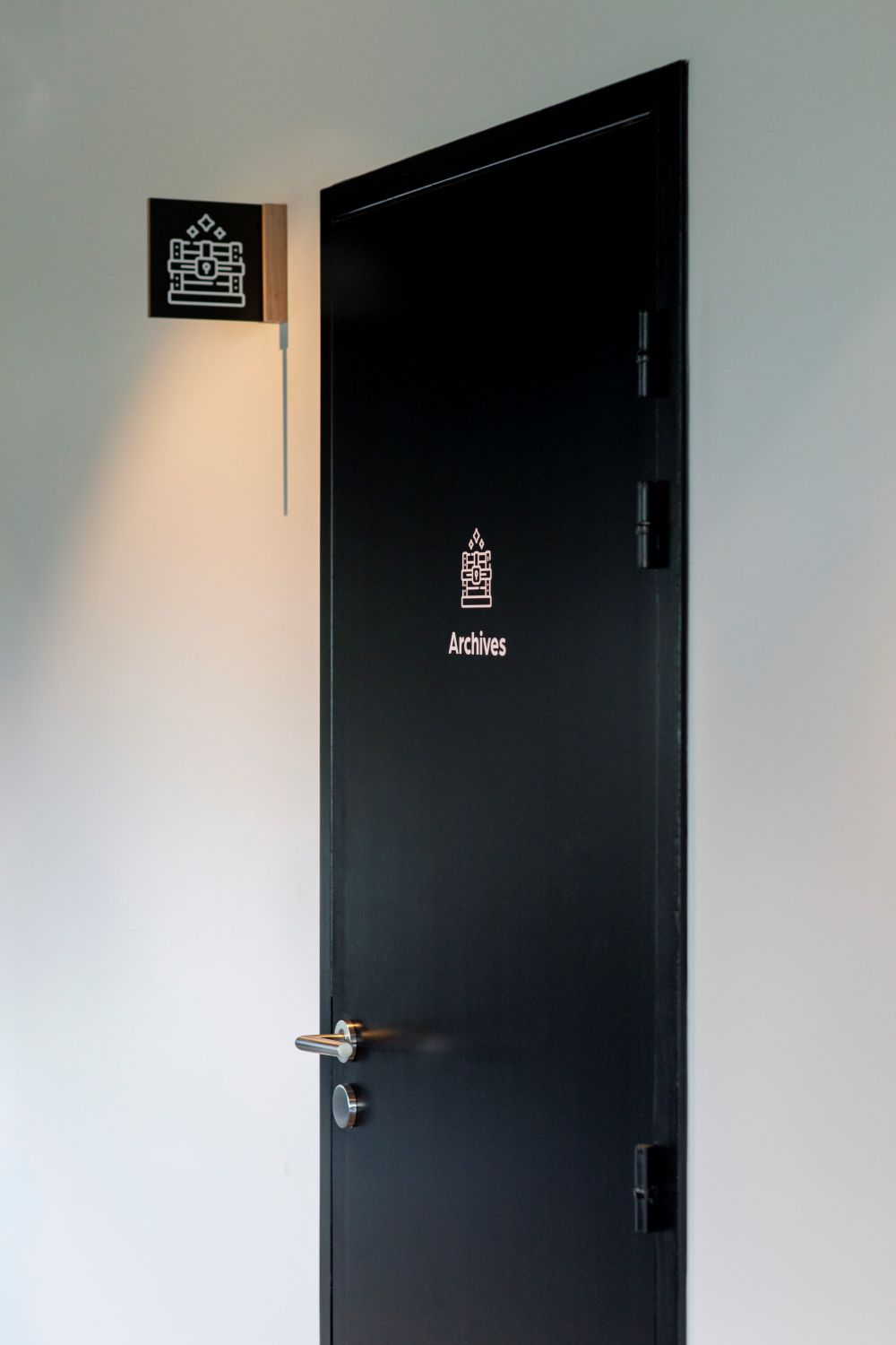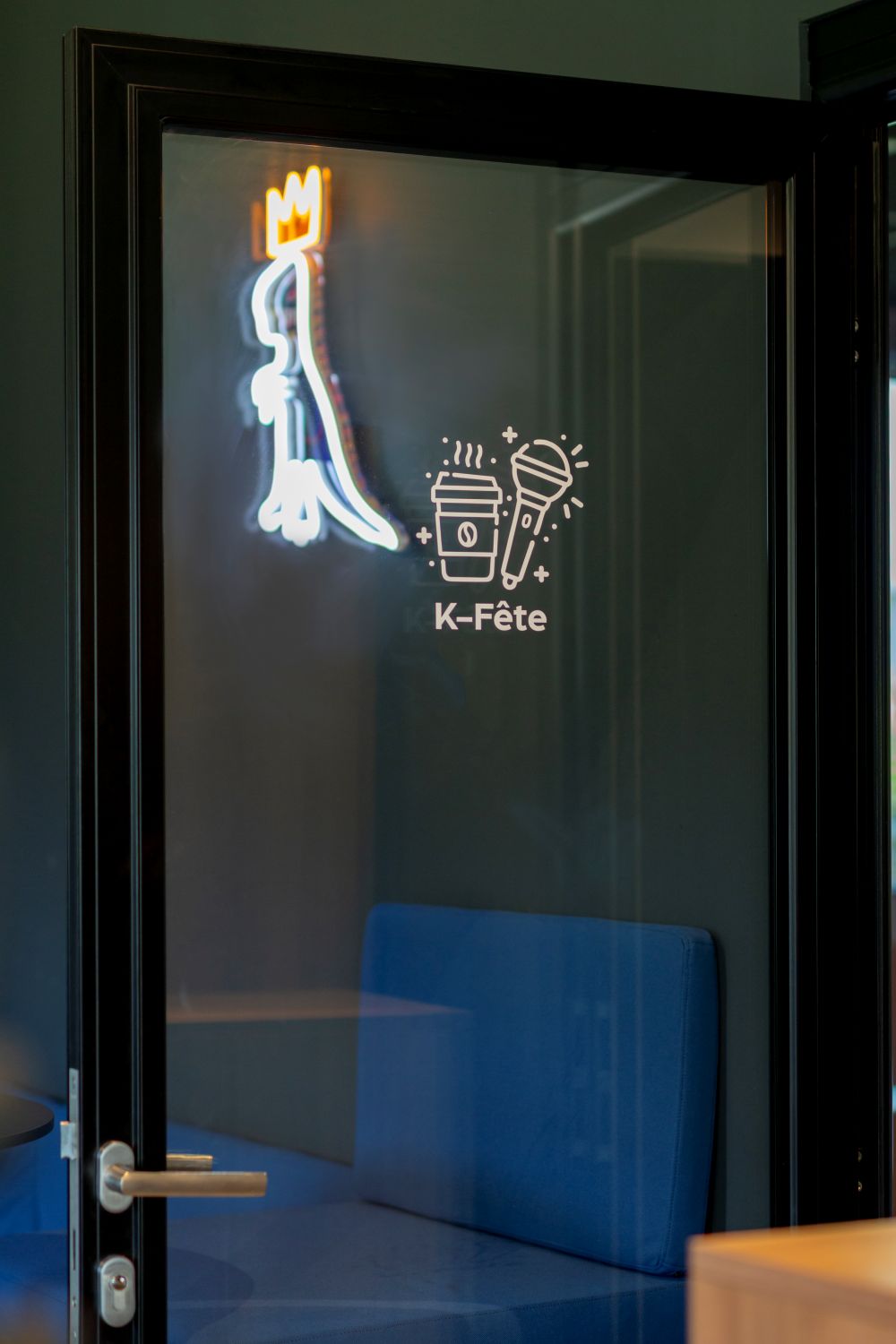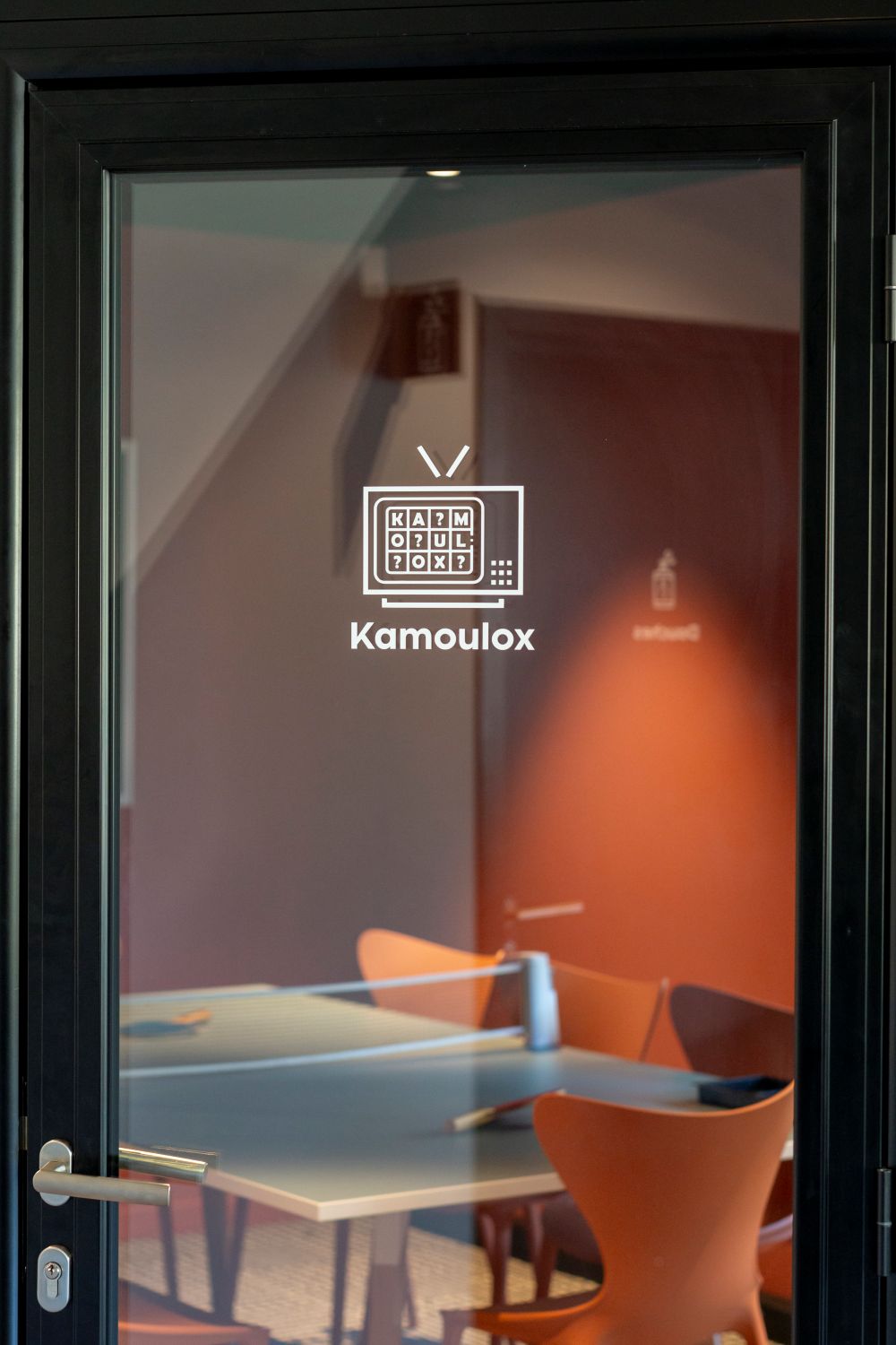 Pour finaliser ces espaces et conclure sur cette nouvelle identité de KAM, nous avons travaillé sur la signalétique. À partir d’une série de mots et de concepts développés par les équipes nous avons créé une collection de pictogrammes originaux : Kamoulox, Bankable, Kluedo, Kraken, Bokal… Ces éléments identifient les espaces, fluidifient les circulations et renforcent l’identité visuelle du lieu, tout en traduisant graphiquement l’esprit créatif et décalé de KAM.