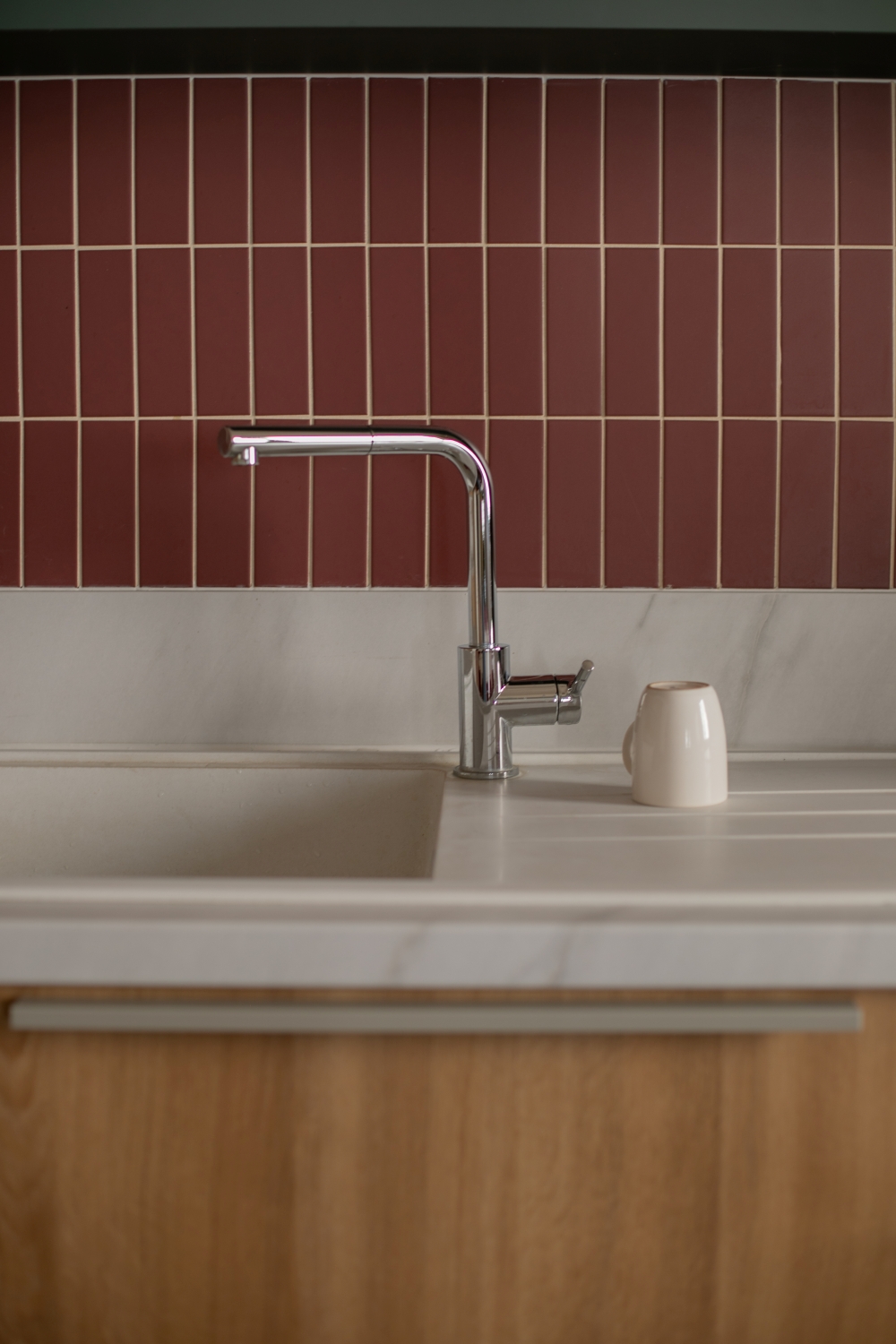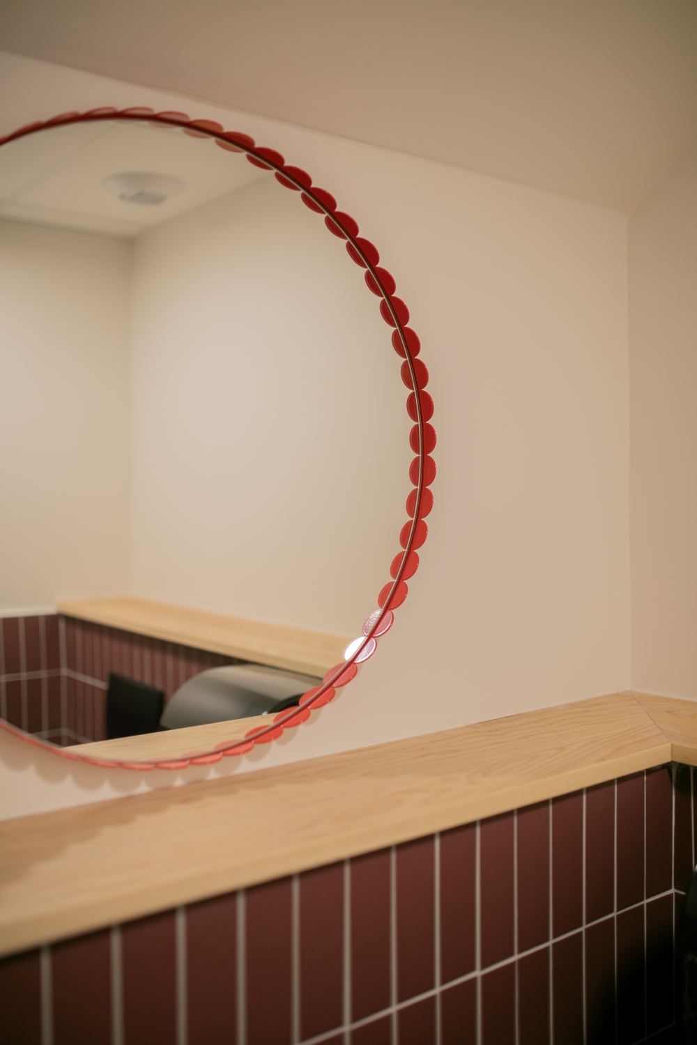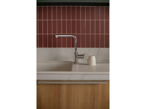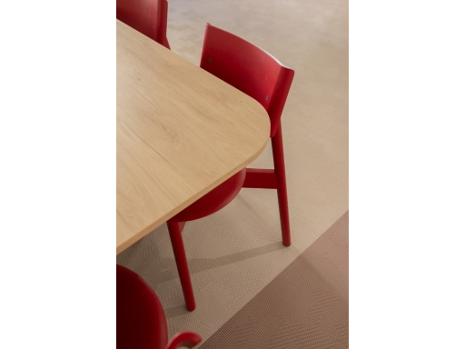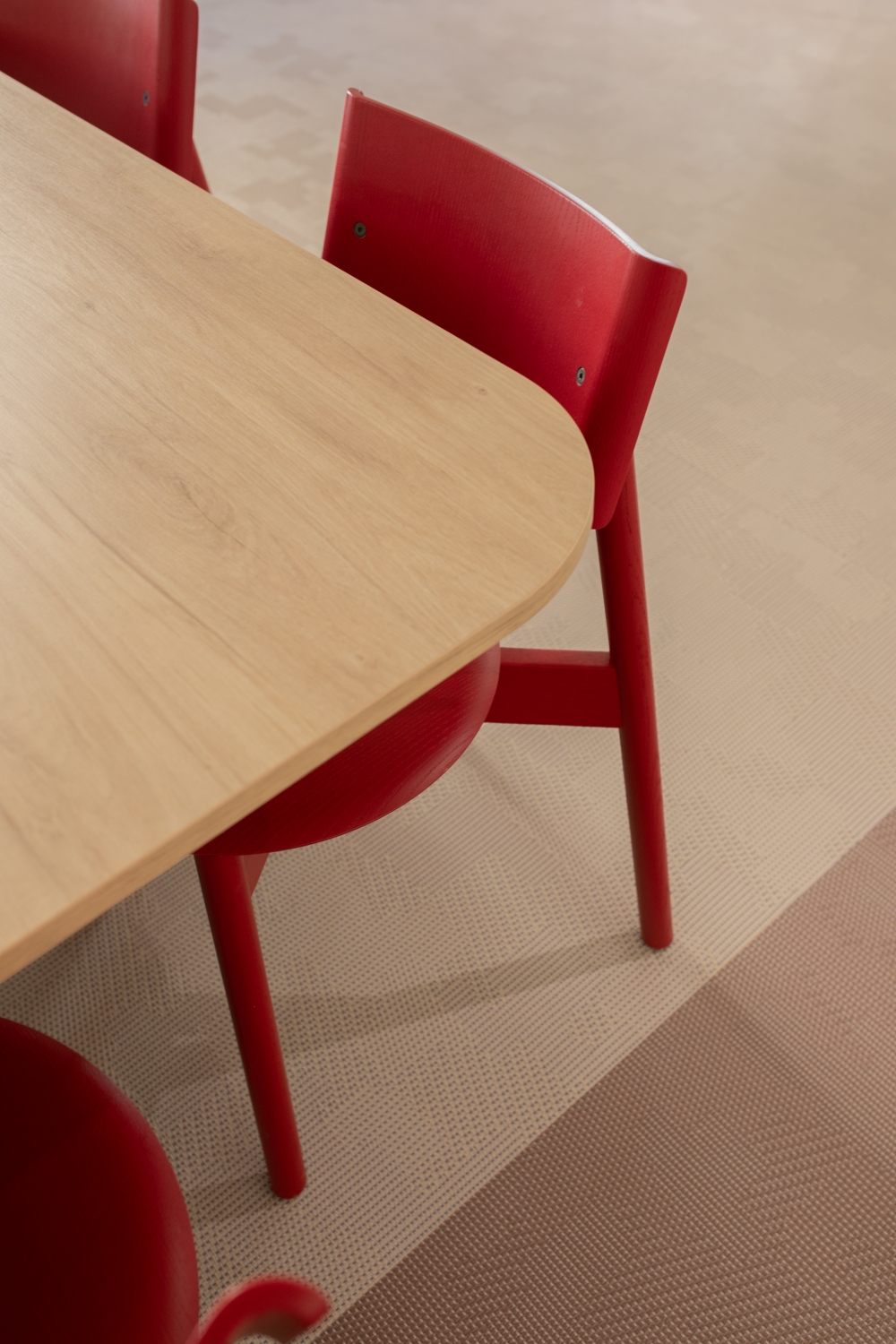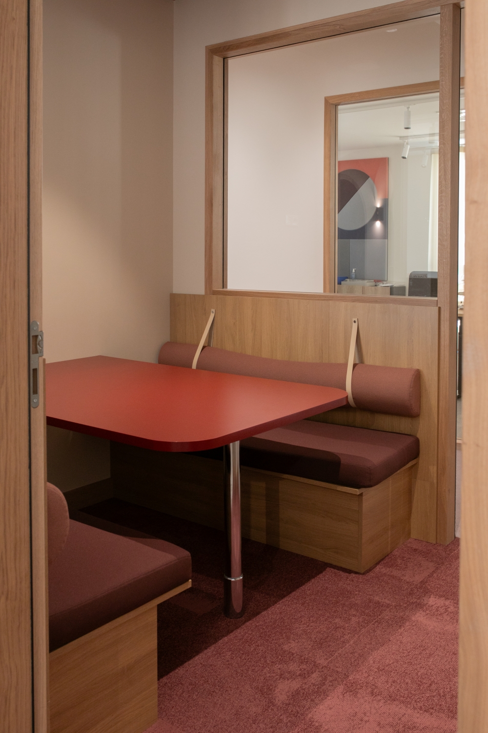Des touches de couleurs franches viennent rythmer l'histoire. Le vert, le bordeau et le rouge apportent de la profondeur aux espaces. Le mobilier coloré favorise la convivialité et le dynamisme pour un espace chaleureux comme à la maison.
