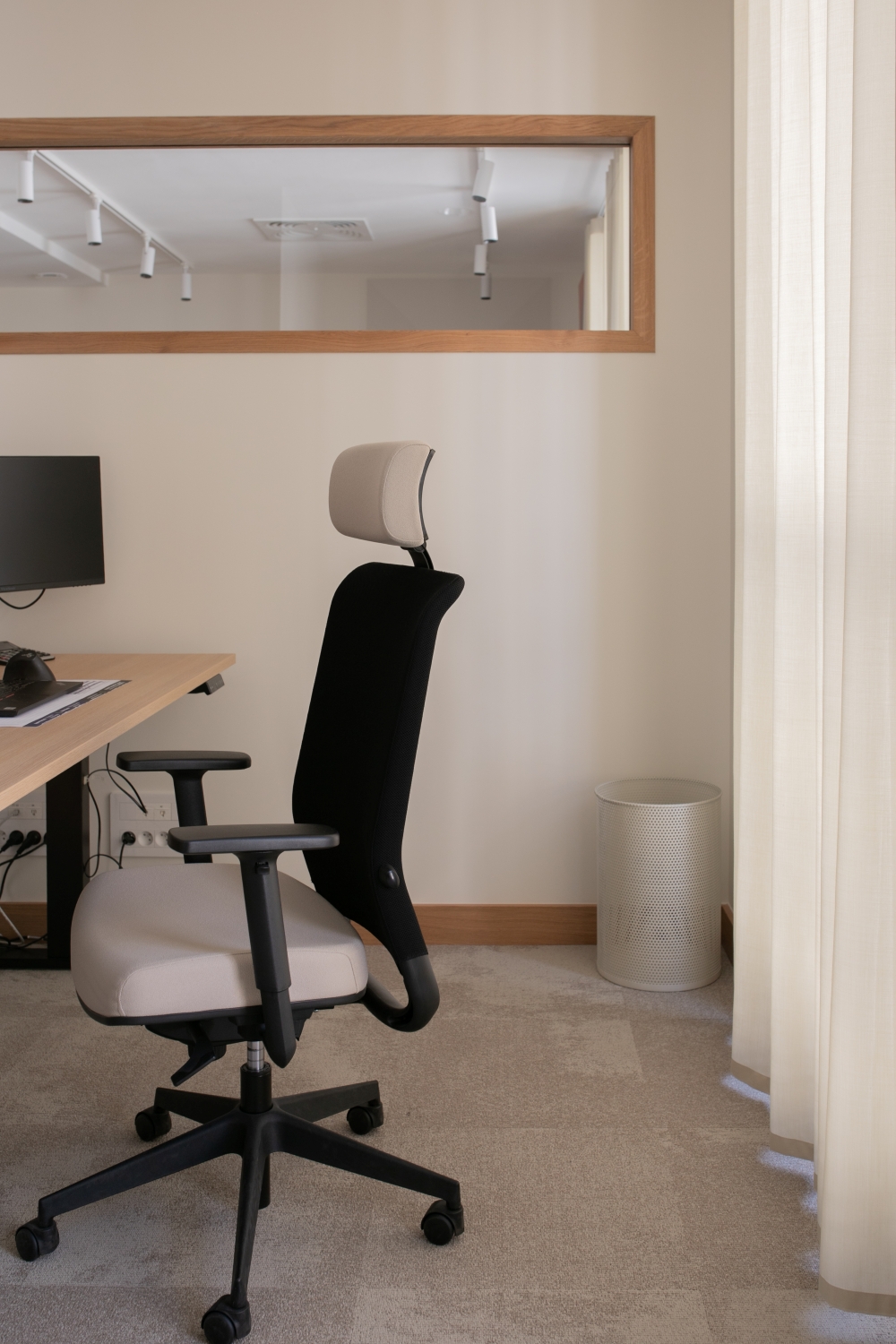 L'espace respire la lumière, le calme et le confort. La base de teintes claires et de tons sobres donne une note élégante. Les sols et peintures aux nuances chaudes comme le beige, nude et sauge apportent de la douceur.