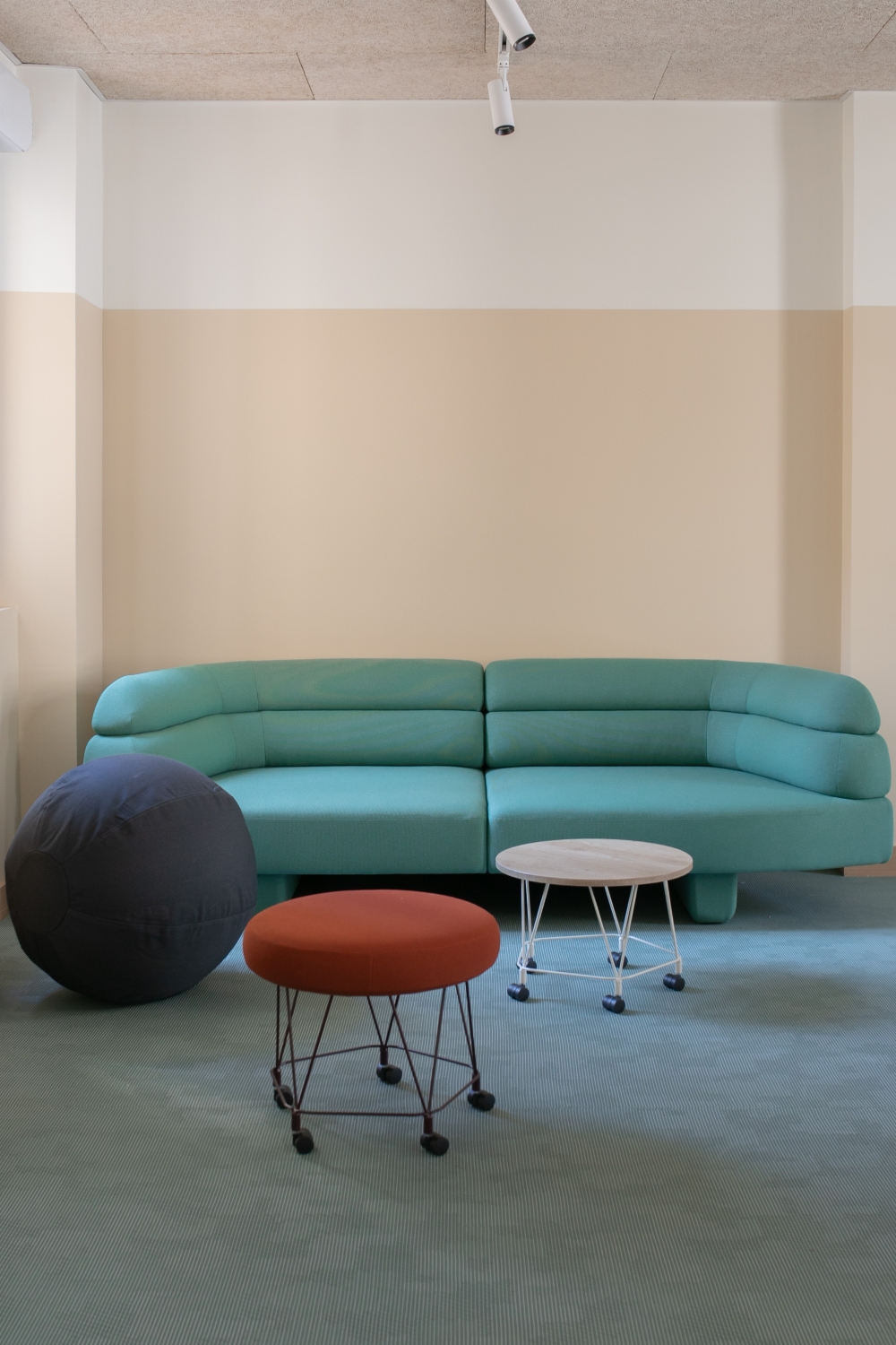 Dans la continuité des couleurs, nous avons créé des contrastes harmonieux avec les textures et matériaux utilisés. Nous avons travaillé des matières brutes et naturelles pour renforcer l'identité du lieu.